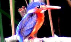 For Kingfishers, the Alcedinidae family has two genera [Alcedo & Ceyx]. Members of this grouping are small birds around 15-20 cm in size, the smallest in Malaysia formerly known as the Oriental-Dwarf Kingfisher is only 12 cm. The Alcedo Kingfishers are mainly piscivorous [feeding mainly on fish], residents in Asia and Africa. Common feature among them are blue upper parts, black and laterally flatten bill. Some the second toe reduced or absent. Those of the Ceyx species have reddish upperparts and and feed mainly on fishes and small insects. Usually standing upright beside water logged spots waiting to plunge into the water for food. World wide 24 species and South East Asia 6 species