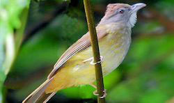 Overall, the Bulbul as a breed, we are lucky that we have lots of varieties in Malaysia. In the field, the good point. Then come the disturbing fact - all Bulbuls almost looks alike, more so for beginners who just started taking up the hobby of birding seriously. Bulbuls are readily available in the garden, park and forest, different species. You can say that they would be there - everywhere that one goes to for birding. That is one extreme and the other end, they are all light brown. To the experienced birder, in that brief moment, the diagnostic markings needs to be recognized swiftly evaluated. Those with lesser experience, at nearly all encounters, there is not enough time and daunting trying to seek out the major differences for a positive ID. Unfortunately yes, the differences are so subtle. I can understand the frustration of an early meeting up with a good size bird but could not tell its ID for sure. Never mind, these same birds would appear again and again on that trip or on subsequent visit to the same place.. For a change, I varied the style of write-up for this page. Instead of writing a paragraph on the bird, I have compiled a short list giving brief details on the individual bird.