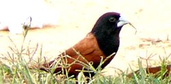 I find it interesting to have the Java Sparrow in this page. First reason is that this beautiful bird though transacted in good numbers through the Pet shop was never considered for an introduced species. At last, some devotees had use the species for release and now seeing the small colony growing in size. Next thing I know, this species of Javan Sparrow with some much similarities, was grouped together with the Munias once upon a time. |