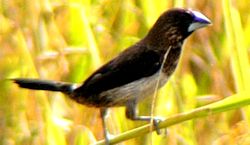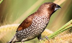 From the family of Estridinea Munias belong to a group of birds that are very familiar to Malaysian homes. That is, they hang around open fields in residential area. Well, most of them do! Their distinctive features:- powerful, short conical bills. They feed on grains, move about in flocks and though softly but are noisy feeders. Munias belong to a group of birds that are very familiar to Malaysian homes. That is, they are seen among the tall grasses in open fields. Here is the list of Munias. The most common species among them all - the Scaly-breasted Munia. Next are the 2 other species that residents in the padi fields or in more rural areas would not miss seeing - the White-headed and Black-headed Munias. The White-rumped though appear on both lowlands and high hills stays further away from residential places. Though Munias these days are popular stock items in Pet shop, I still have not verified any reasons for its popularity as cage birds. Are they? Rather being purchased by followers of Buddhist faith and released as freed birds. |