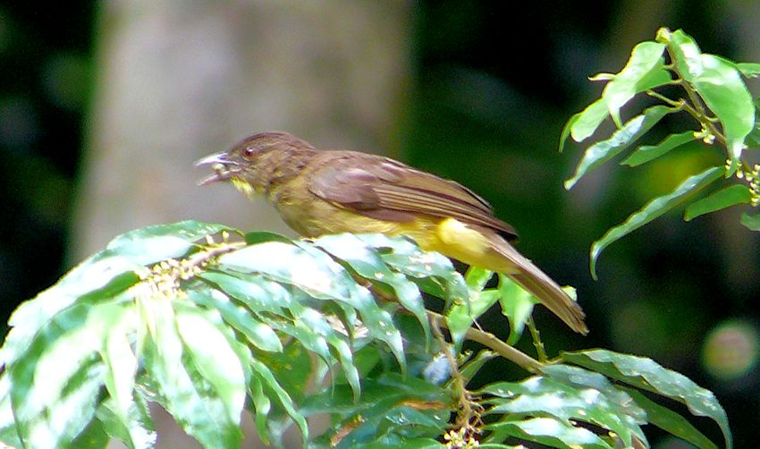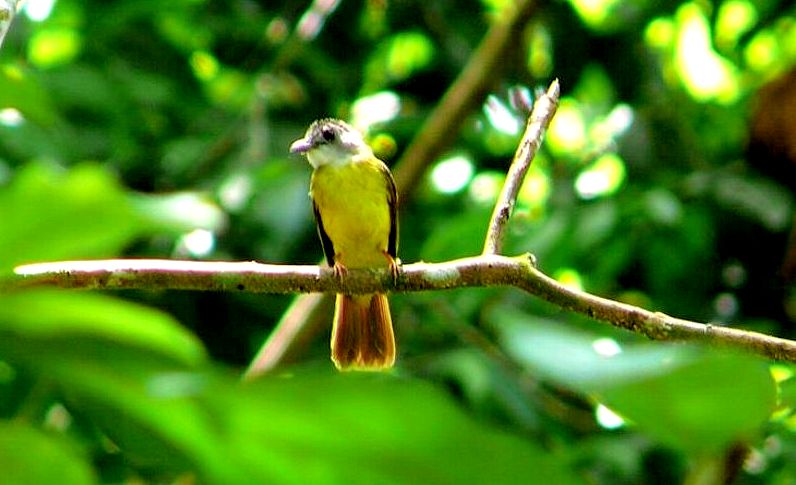 Diagnostic markings :- 20cm. I suppose it is that longer tail the species has that makes it measurement longer. Otherwise this is a slim tiny bird.[1] Bright yellow under part [2] Grey head with white face below eye and white throat. Upper part typical of brown Bulbul. Distribution :- This bird is native in Sumatra and the Borneo Island. I am still looking for them. All meeting up were accidental. Habitats and preferences :- Lowland deep forest bird. It frequents the lower to middle storey. The bird hunts alone or in group. It stay in perch for some time and when calling, the white colored puff throat is prominent. Their favorite hang out are very dark places under canopy area. While it is not difficult to find them, I do not get the chance to meet them that often, except in Taman Negara. Within that forest area, on almost on all the trails, I walked I got to see them effortlessly. Need not travel that far, at certain times of the year, they are spotted in the forest of Pangsoon & Congkak as well. Meeting up with them is seasonal. If they are around, chances of seeing them is very good.