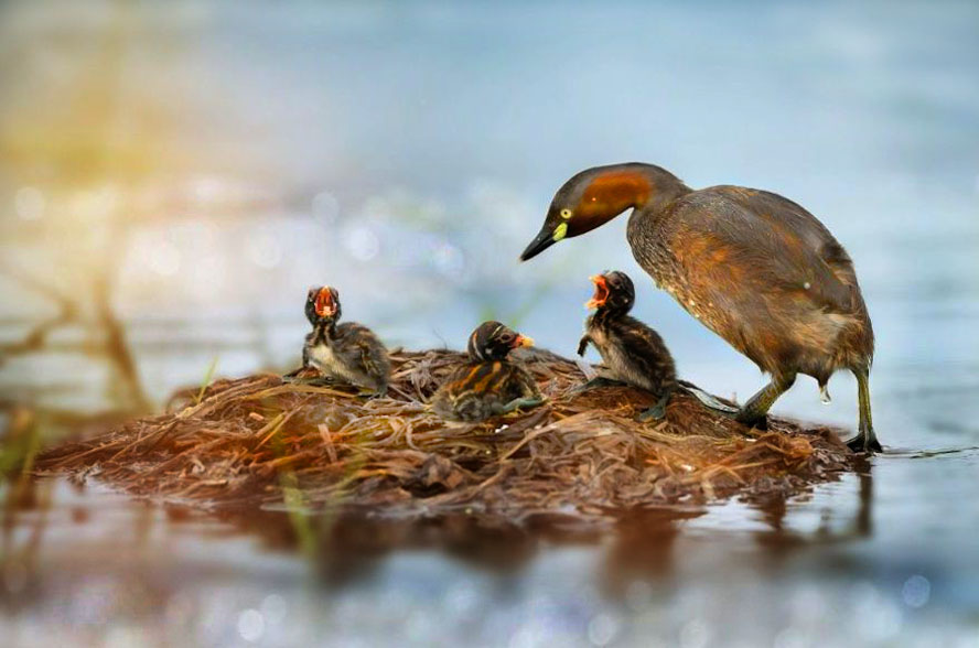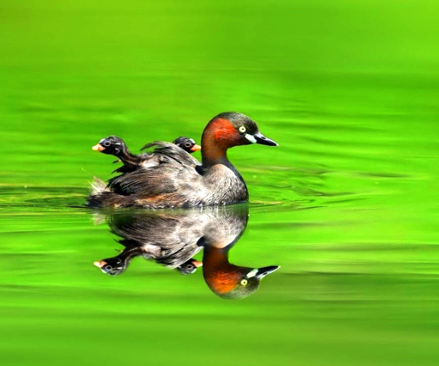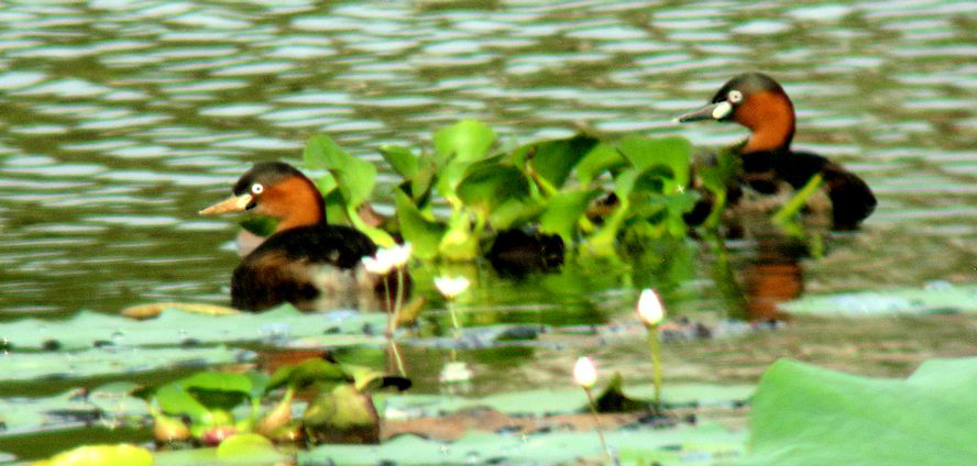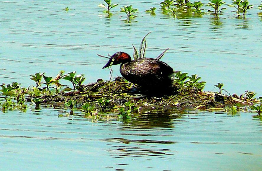 Grebe comes from the group of birds under Podicipedidae - aquatic duck like, longish neck with almost no tail birds. They have legs near the end of body with web feet. Worldwide there are 21 species of these birds and 3 of them found in South-east Asia. We have one in Malaysia, the Little Grebe. This Duck is found in Africa, across southern Asia and reaching east to Japan and south to the Solomon Islands. It is less then 28 cm long. The Little Grebe has its legs placed too far behind in the body, not surprising that the bird could hardly walk on land. It is a terrific swimmer and hunter especially under water. The duck lays between 4-7 eggs. It has the habit of covering its eggs in the nest with vegetation when its leaves to go hunting. When the chicks are hatched they could swim instantly but also often seen the chicks riding on the back of the swimming adult.