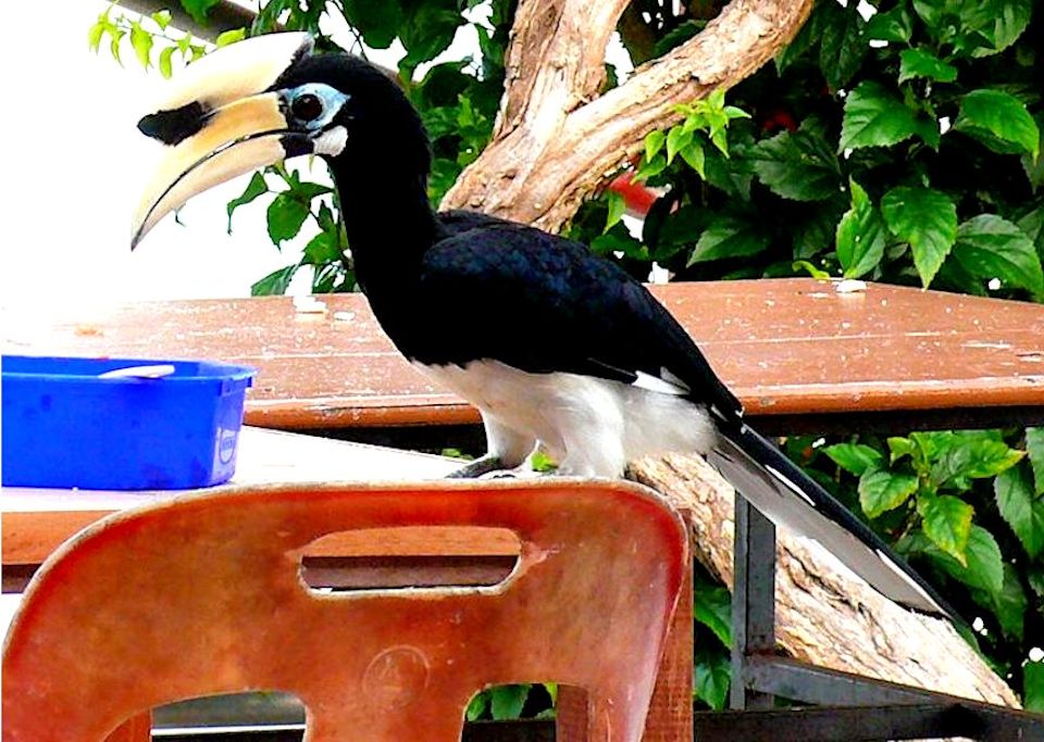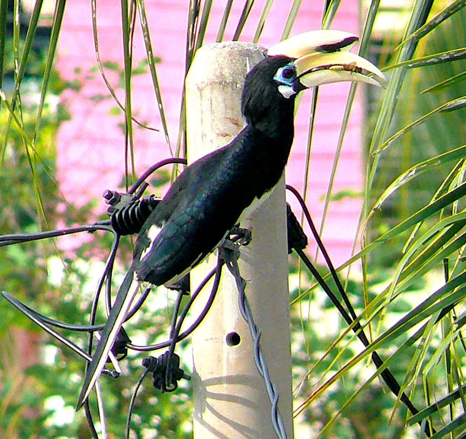 This is the most common Hornbill in Peninsula. Found in all lowland forest with water ways and along the coast, easiest and closest for me would the Raja Mud a forest in Sekinchang or the Langat Dam area in Pangsoon. For those non-birders but loves Hornbill, put up a night in hotel operated by our badminton star Tan Yee Khan on Pangkor Island itself. He feeds them each morning, not a pair but the whole flock. Along that whole stretch of coastline in Pasir Bogak, the Hornbills would be visiting hawkers stores. If you are lucky enough the Rhinoceros may be flying past as well.