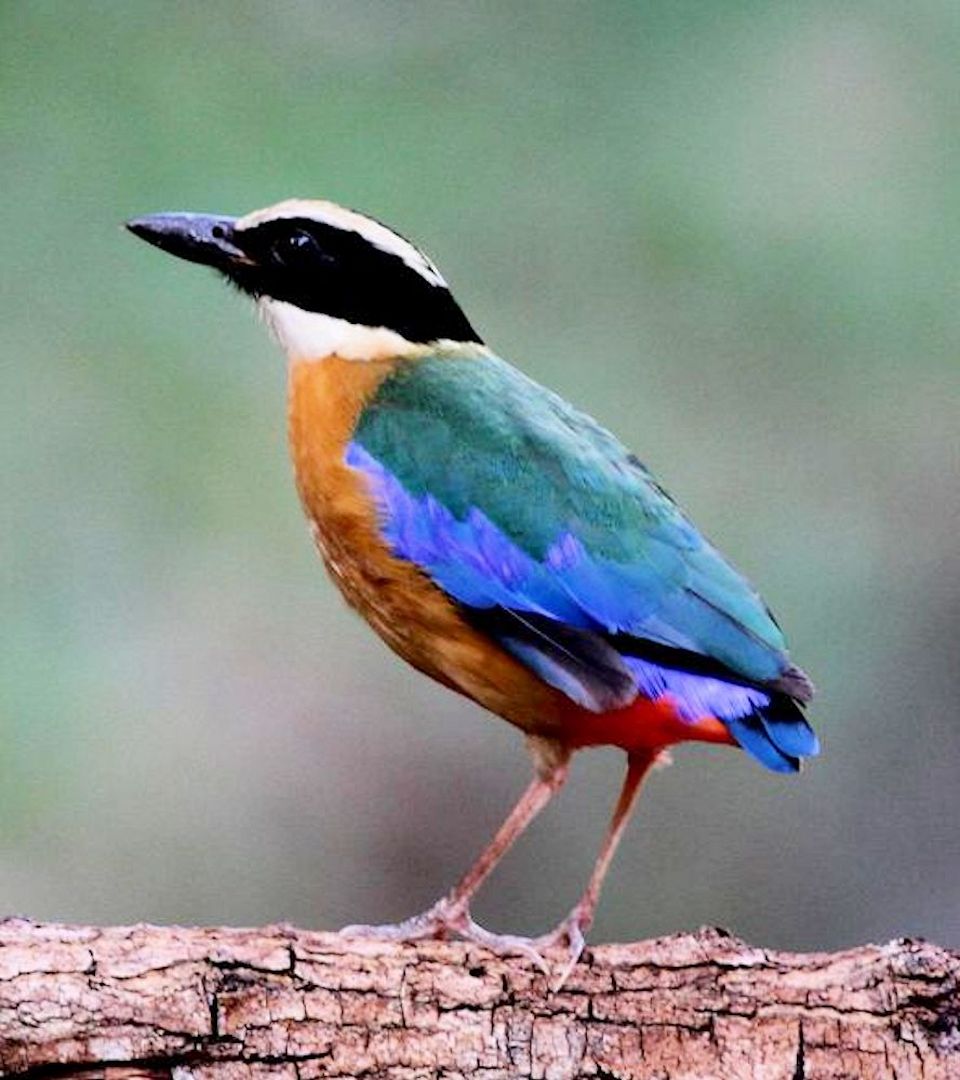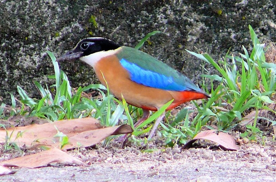 Size & diagnostic markings:- 20 Cm. The Blue-winged Pitta is larger at 20cm, less roundish body. It has a dark green upper part and a rufous under part with a patch of red starting from the center of the under side to the vent. Most prominent would be the black face buff brownish crown with a black line in the center. Then the broad bright blue stripe along the wings. Distribution :- The bird breeds in south-west China. It winters around Sumatra and Borneo. Another Pitta that is frequently seen in Malaysia now during the migratory season.Habitats & preferences:- This is a lowland bird of the forest edge and usually where there is a body of water nearby. This Pitta do not seek remote jungle but flat lands with water sources and wet patches. So far most places spotted are in parks with human The Blue-winged is about 20 cm long. The bird breeds in South-western China and winters in Sumatra, Java and Borneo. This birds choose open country, parks and secondary forest in the lowland areas. |