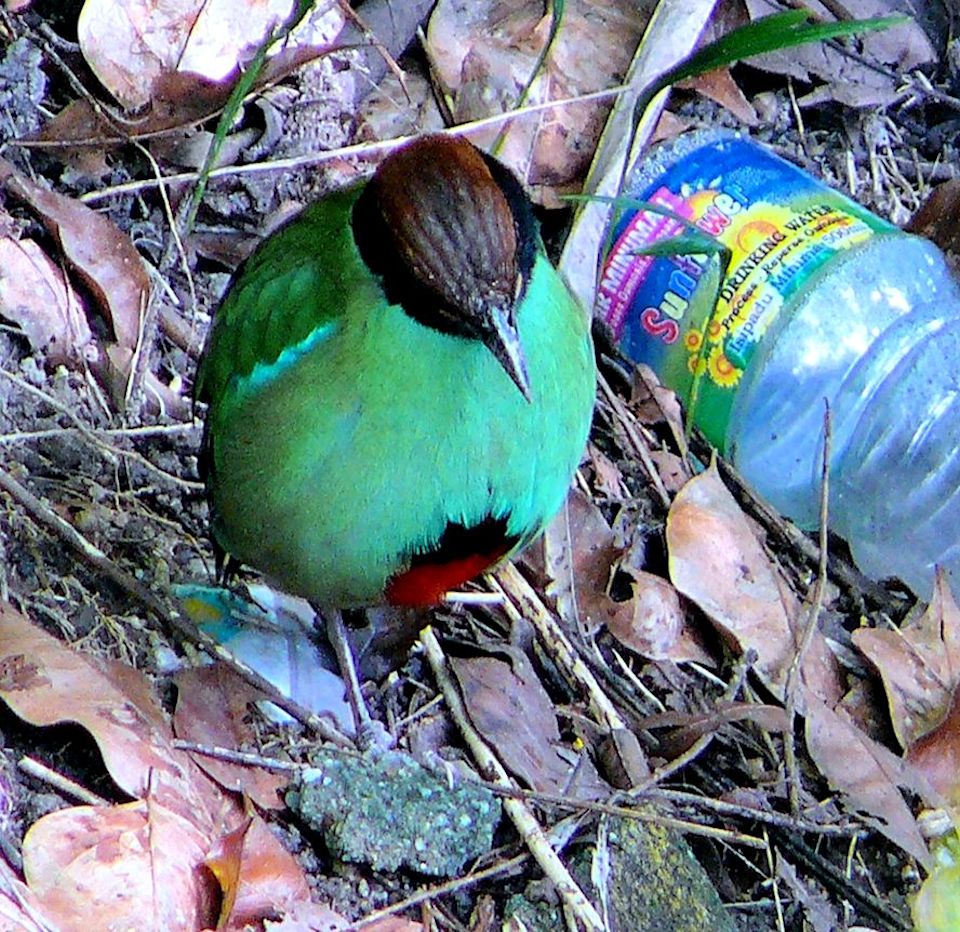 The bird is now seen for long period during the migratory season. I seem to detect a pattern of the same bird getting back to the same spot each year. Habitats & preferences:- A migrant which prefer lowland forest with isolated pools of waters.It is frequently reported that the Pitta in it's night migration, crushed into window panes in urban places. That speaks much about its habits and choice of migration trails. Have being seen in many places, mainly in Shah Alam Parks and near my house. This is a very friendly bird showing little fear for human being. The few places I mentioned are all near to human habitats or in one case a park frequented by people. Having said that still not easy for accidental encounter other than those working or exercising near the area frequently. |