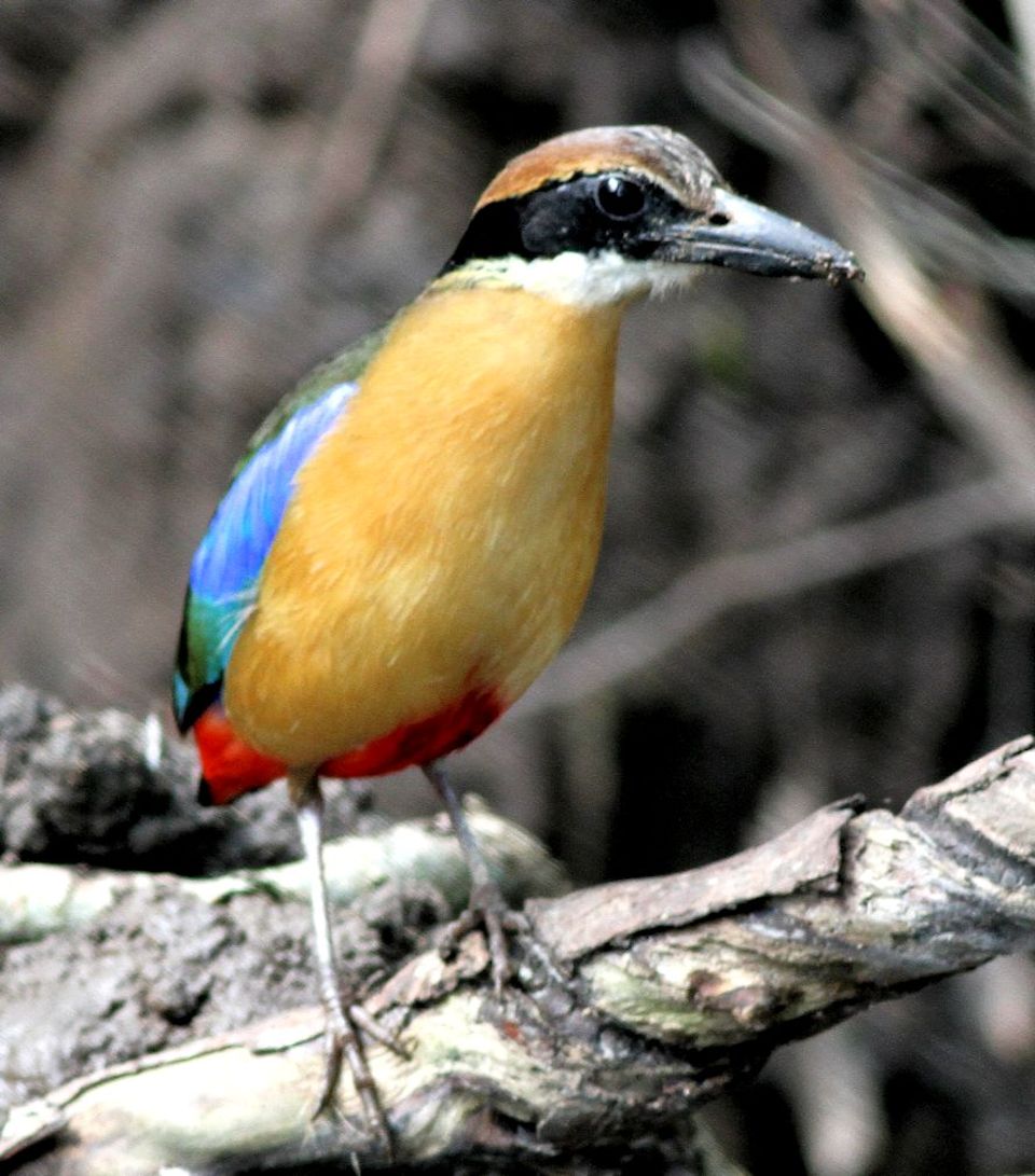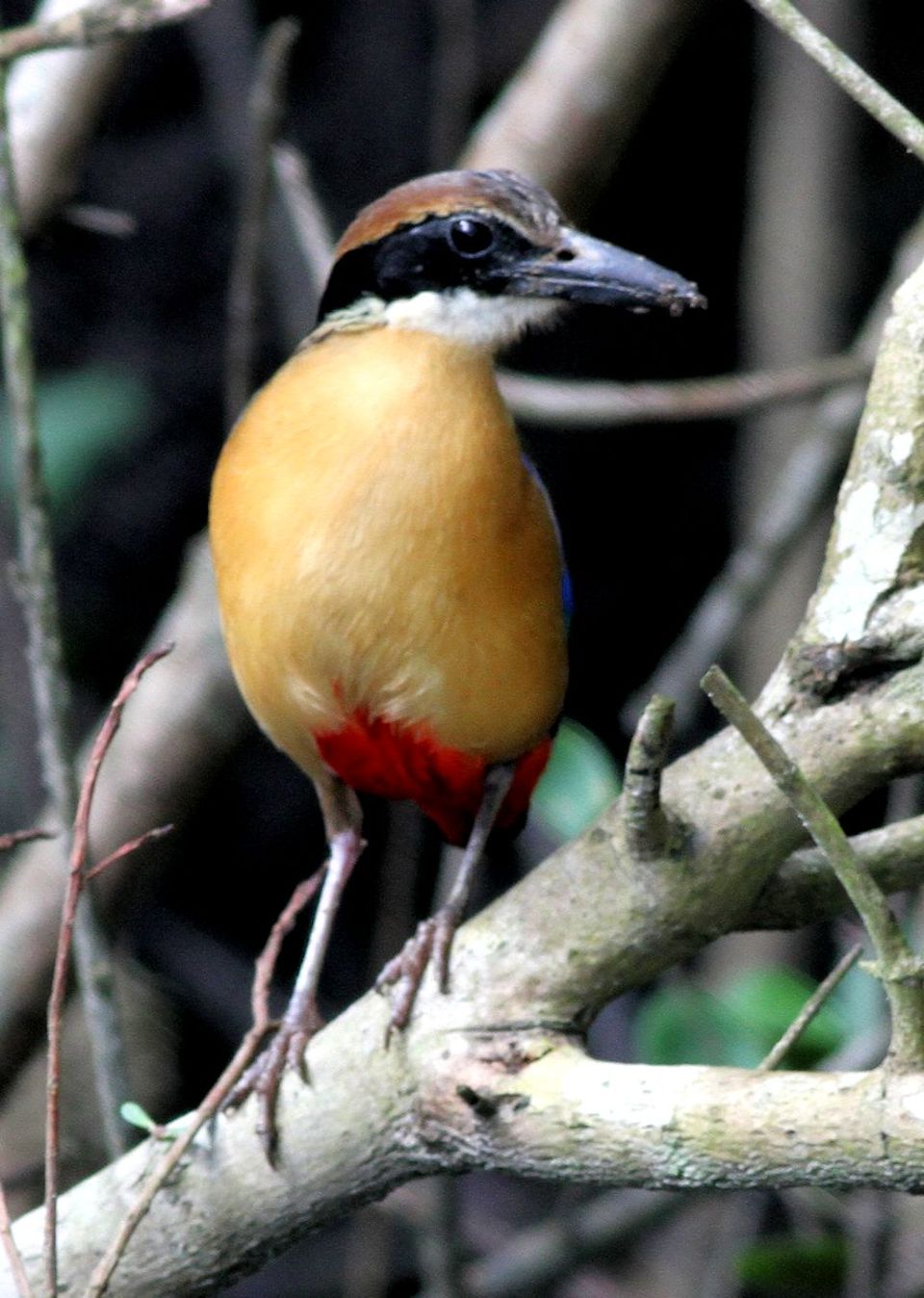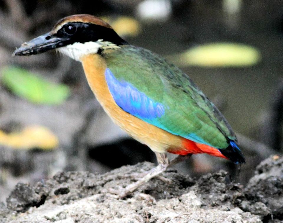 Size & diagnostic markings:- 21 Cm. The Mangrove Pitta sharing the same body shape and colorization with the Blue-winged Pitta is slightly larger at 21 cm. The features are almost identical with the differences listed out on the table above. Instead giving a brief run through, I have expanded the page and listing out the comparative differences between the 2 birds. Distribution :- This is a bird from the Southern Bangladesh and Sumatra. To me those Mangrove Pittas I encountered in Pulau Indah seem migratory. getting to hear them calling during the winter months. But then again, only with the experiences of one or 2 season, their stay here is rather long tooHabitats & preferences:- As the name implies, this is a bird of the Mangrove forest. The catch is that the bird forages over a large area. Most times so far away that though in the same area, their presence is not detected as the calls are lost. The Mangrove Pitta like most Pitta calls regularly and it is these calls that confirms its presence in the area. In Air Itam Dalam in Penang, I had met up with the birds a couple of times without hearing its calls. These encounters were very brief as the bird is a shy bird eagerly wanting to stay out of sight. But with the bird in Pulau Indah, these Pittas were almost domesticated displaying quite a different behavior. There was also other Mangrove Pitta in another part of Pulau Indah showing the conventional Pitta behaviors of shying away from humans. |