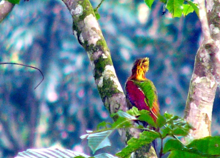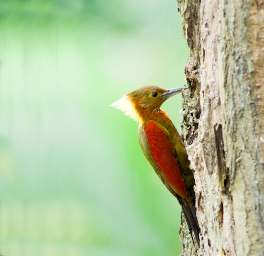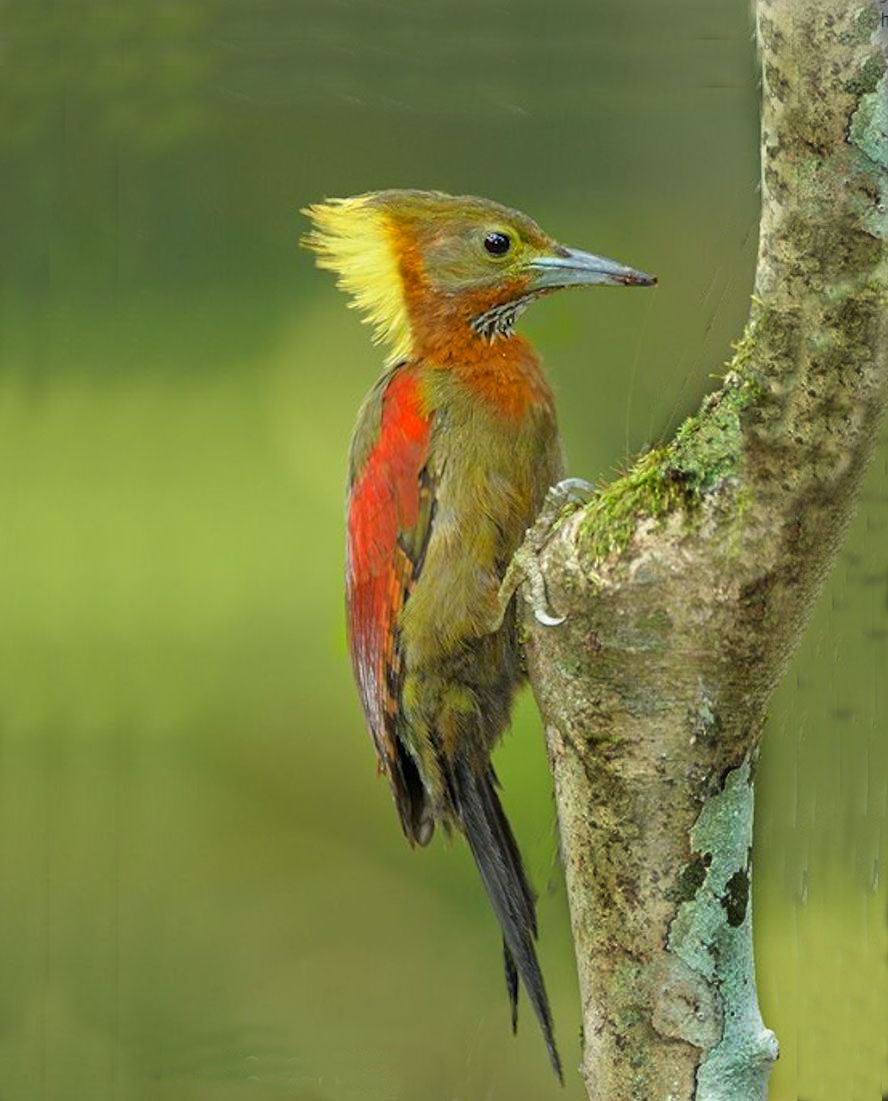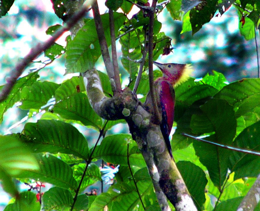 Size & diagnostic markings:- 28 cm. A fairly large Woodpecker at 28 cm long. With the looks of Crimson-winged Woodpecker having bright red wings part and Olive-green upper part. The eye ring is less prominent. The single most important diagnostic marking would be:- 1] the chestnut colored side of neck and the breast. Then 2] the small details of the throat white with black streaks. Distribution :- Also a bird of the Greater Sundas with a local population. In Malaysia, this is a bird of deep forest and not frequently encountered. Then on random meeting up easily dismissed as a Crimson-winged Woodpecker. Habitats & preferences:- This is a bird of the deep forest and mangrove wetlands but could be found in the hills as well. I could have missed many chances of photographing this bird, the lack of knowledge then made me complacent and dismissed spending more time to look for details on this bird. So my advise, upon seeing that common "Crimson-winged" don't draw conclusion yet. Observed harder. This is the 2nd Woodpecker that I was tied up in knots. In Malaysia, where can the bird be found:- Mainly in places with primary jungles. This is a large bird but more often seen from a distance spot. Rengit is one such destination when the chances of meeting up the bird is very good. Another place would be the forest at the Ulu Langat Waterfalls area of Terkali. Forest in Perdik and more times in Rengit.These places were quoted from my own experiences |