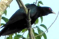 The Asian Koel is a member of the family of birds under Cuculiformes. Within this family, there are also birds with names that we are all familiar with such as Cuckoos, Malkohas and Coucals. The body profile and the posture of the Asian Koel bears so much similarities with these birds. Most important to note is the fact that Koel is also brood parasite i.e. they lays eggs in the nests of other birds. Koel are very frugivorous when their diet consist entirely on fruits. In the 1980's these birds in their passage through Peninsula Malaysia prefers a route passing by the coastal area along the Strait of Malacca. Hence islands like Penang & Pangkor see a lot of these birds. Lately the birds moved further inland and this time we get lots of the birds in our garden as well. Old habits dies hard, on the coastal area, this bird is still seen in larger numbers. The very familiar calls of loud continuous call of "Koo-oo" in monotone is that of the male while a second call heard at times in a form of rapid single tones is that made by the female in respond. As for the origin of the name "Koel", various sources mentioned that the name "Koel" could be echoing the calls that the bird made. There are others who think that the name derived from a Hindi word which has its roots as "Kokila" in Sanskrit. Anyway I learned that in Sri Langka the local name for this bird is "Koka" Koel do not simply lay eggs in empty nest. They carefully chooses the host. When the time is ready, the female would lay her eggs within a day or two after the host has laid her first eggs. Somehow by design they know that their eggs would be hatched 3 days ahead of the host's chicks. The Asian Koel also share lots of similarities with the House Crow like body color and shape. It is marginally slimmer and smaller in size. The main diagnostic marking from the House Crow is that the Koel has a stout greenish beak and red eyes. Size & diagnostic markings:- 44 Cm. The size of 44 cm shows that this is a large bird. The upper part and the under part are in uniform dark color. The feathers are glossy blue-black in color, the stout pale greenish and of course the red eyes. Distribution :- Resident in the Greater Sundas, Philippines, New Guinea. Breeds in the Indian sub-continent, Central and south China. A passage migrant through Peninsula Malaysia. Habitats & preferences:- Secondary growth, cultivated land parks and garden. In Malaysia, where can the bird be found:- As I mentioned, the bird is mostly seen near the coastal region of the Straits of Malacca. Now when in season, the calls could be heard in almost every part of the west coats of Peninsula malaysia. |