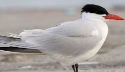 CHARADRIIFORMES 29 Laridae Malaysian Birds Terns Terns are long-lived birds that, by and large, enjoy a relative lack of natural predators and parasites. Unfortunately, most species are experiencing a decline in numbers, primarily due to human activities, including habitat loss, pollution, disturbances, and predation by introduced mammals. The Chinese crested tern, for instance, is in a critical situation, and three other species are classified as endangered. In terms of size, terns exhibit considerable variation, ranging from the petite Least Tern, measuring 23 cm in length and weighing a mere 30 grams, to the larger Caspian Tern, with a length of 48 cm and a weight of 700 grams. Distinguished by their slender build, lighter bodies, and streamlined appearance, terns stand apart from gulls. The elongated tail and narrow wingspan contribute to their graceful flight. Both male and female terns are identical in appearance, with males typically being two to five percent larger than females and sporting relatively longer bills. Sea terns often feature deeply forked tails or, at the very least, a shallow V shape. Noddies, on the other hand, typically have notched tails, with the longest tail feather located in the middle outer position, rather than at the center or outermost edge. Despite their short legs, terns are adept runners and rarely engage in swimming, typically landing on water only for bathing. The majority of sea terns exhibit light gray or white body plumage as adults, complemented by a black cap on the head. The coloration of their legs and bills varies, encompassing combinations of red, orange, yellow, or black, depending on the species. The pale plumage serves as a conspicuous marker at sea, attracting other birds to productive feeding areas for various fish-eating species. Against the sky, the white underparts help conceal hunting birds from their prey. However, during the breeding season, certain terns, such as the Black Tern, White-winged Tern, and Black-bellied Tern, develop black underparts. Anous Noddies, in contrast, exhibit black plumage with a pale head cap. The evolutionary reason behind the dark plumage in these birds remains unknown, though it's been suggested that in tropical areas with limited food resources, less conspicuous coloration may make it harder for other noddies to detect a feeding bird. The type of plumage, particularly the head pattern, is linked to the phylogeny of terns, with pale-capped, dark-bodied noddies believed to have diverged earlier than other genera from an ancestral white-headed gull. Juvenile terns typically have brown or yellow-tinged underparts, featuring feathers with dark edges that create a plumage resembling scales. Dark bands on the wings and a short tail are also characteristic of juvenile terns in most species. The transition to adult plumage usually occurs after migration, with the bird gradually resembling an adult but retaining some juvenile features, such as a white forehead with only a partial dark cap. Full maturity is typically achieved by the third year. After breeding, terns molt into a winter plumage, typically exhibiting a white forehead. Uncommon plumage variations, such as melanism and albinism, are much rarer in terns than in gulls. Gulls