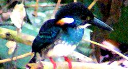 For Kingfishers, the Alcedinidae family has two genera [Alcedo & Ceyx]. Members of this grouping are small birds around 15-20 cm in size, the smallest in Malaysia formerly known as the Oriental-Dwarf Kingfisher is only 12 cm. The Alcedo Kingfishers are mainly piscivorous [feeding mainly on fish], residents in Asia and Africa. Common feature among them are blue upper parts, black and laterally flatten bill. Some the second toe reduced or absent. Those of the Ceyx species have reddish upperparts and and feed mainly on fishes and small insects. Usually standing upright beside water logged spots waiting to plunge into the water for food. World wide 24 species and South East Asia 6 species