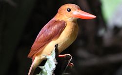 ,The 3rd and last group are the Halcyonidae. They are the "tree" kingfishers or "wood" kingfishers. Easy to know them as they are what we call the big Kingfishers with bodies around 27-40 cm long. Typical of Kingfishers, they seat upright on visible and exposed location. Very powerful flight and direct to destination. This group form the bulk of Kingfishers in numbers having about 60 species. Apparently this family originates from Indochina and the Malay Archipelago and then spread to many places in Asia and Australia, including the islands of the Pacific and Indian Oceans. World wide 61 species and South East Asia 9 species.