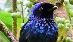 Drongos are a birds with quite a few distinctive features. Most notably are the Racquet-tailed species with the long streamers extending out from their fairly long tail. Other Drongos which are without streamers have the tail -forked. Next, these are birds with loud calls and in metallic tone. When they are around, you just cannot miss their presence, the loud calls in unique tones are repeated in close frequencies. Lastly, another general feature of these birds, is their glossy dark blue colored feathers.