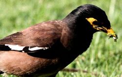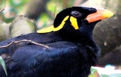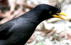 The common name of the bird is Myna. Spelled often with a "h" as Myna, is a bird from the Starling Family -Sturnidae. The term "Myna" is used widely for any bird that looks like Starling, irrespective whether they are from the same family or not. Mynas are fair size birds passerines with strong feet, powerful flier and direct to their destination. Most species are gregarious and generally an open country bird in dark color and often with a tinge of brown. Worldwide there are 114 species and in south east Asia, there are 23 species. Found naturally in south and eastern Asia and in many countries as introduced species. The Common Myna with its habits and breeding rate is often regarded as a invasive species. The topic of Myna cannot be complete without the mention of "Soft-billed" birds. No! nothing to do with soft or hooked bills that the caged birds have. Soft-billed is a loose term used by pet lovers and is synonymous with the soft diet the birds are are fed on. Irrespective of whether the birds is Frugivorous, carnivorous or Insectivorous. The Hill Myna excel in this area for their excellent talking ability, but in general the Mynah Bird was once one of the most commonly kept softbills, but for some reason have lately become increasingly hard to find. Beside the Hill Myna who has the extraordinary ability to mimic, the rest of the Myna are no song bird. Their calls coarse but loud. The Mynas could be divided into 3 types. 1. Those seen in the forested areas - Jungle and Hill Mynas - as their common names imply 2. The "true" Mynas, as seen in urban places - as in White-vented Myna, Crested & Javan Myna 3. Those named as Starlings - as Vinous-breasted Starling, Asian-pied Starling etc. This page is devoted to the 5 birds seen in Malaysia and named as Mynas