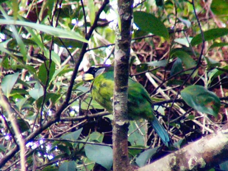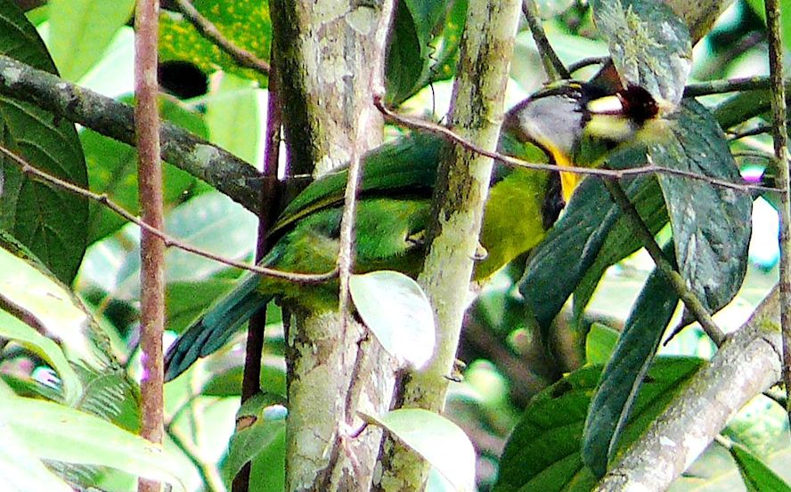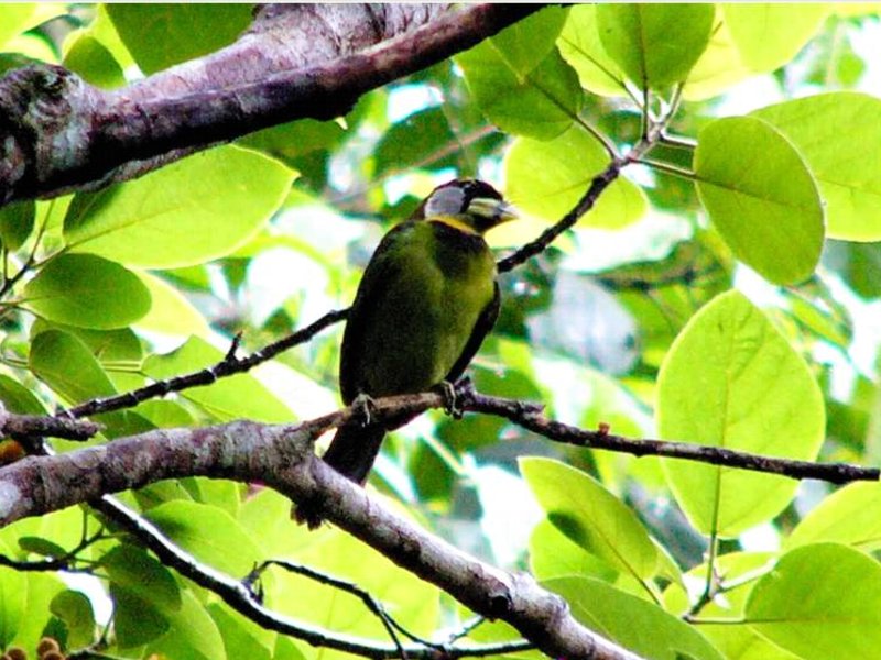 The Fire-tufted Barbet crawl like a Parrot and in doing so, assisted by it's beak the way Parrot do. With its prominent looking beak, makes it appear larger than it actually is. The black bar on the beak, red tuft and the yellow breast band, resembling a work of art. We nick-named the bird "Picasso Bird". Then those other birders who are used to seeing Toucan, says it has vague resemblance to a Toucan-Barbet. Having seen it yourself, you will agree that this Barbet looks unique and again, another Barbet which is an easy bird to ID Oh! The bird makes a series of loud, ugly, Cicadas tone of calling |