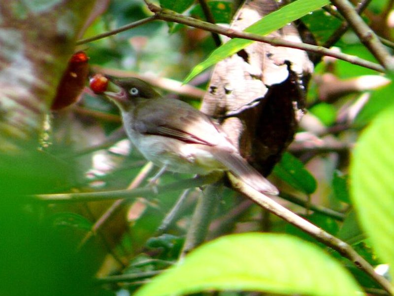 Malaysian Birds Cream-vented Bulbul Diagnostic markings :- 19 cm. This bird could be common as well once the correct habitats are found at the forest edge. [1] Striking white eyes Otherwise the bird is similar to the other Bulbuls particular close to the looks of the more common Red-eyed Bulbul. But in picture the bird looks different and distinctive with its brown cap against the light brown under part. While it is difficult to track them down but after spotting it, looking at the eyes. Making ID is relatively easy. Once more reminder, the white eye is diagnostic! Unmistakable. Very little is known about this bird and I am still compiling notes relating to it sightings. To my surprise, I thought this is a rare Bulbul. But in the right environment, I found that I kept meeting up with the bird over and over again. Cream-vented Bulbul bird's pix # 1