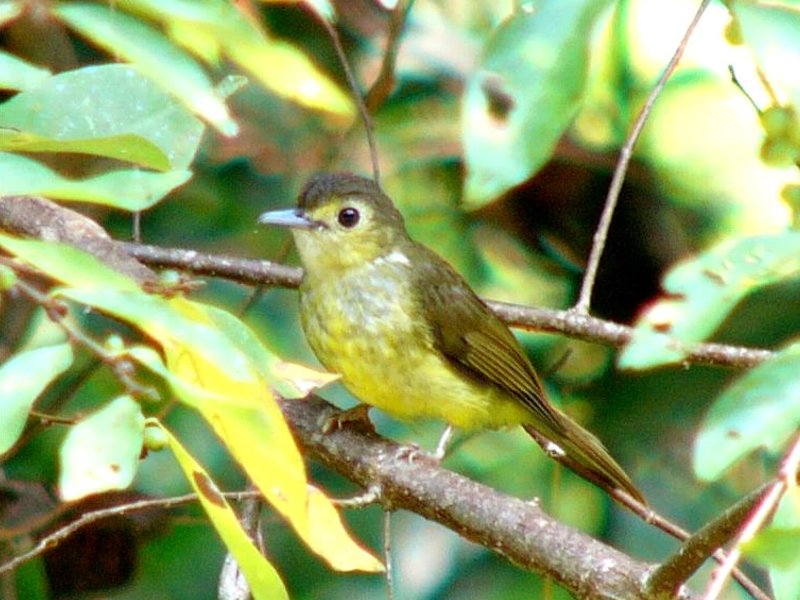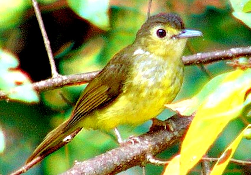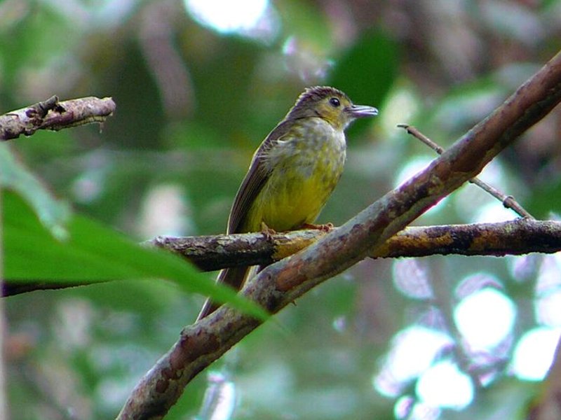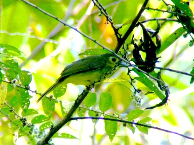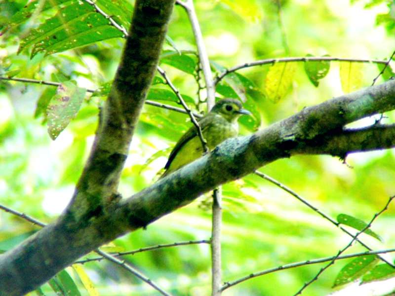 Malaysian Birds Hairy-backed Bulbul Diagnostic markings :- 16.5 cm. Here same as the Grey-bellied this small Bulbul also appear much larger than the stated measurement. cannot explain how I got the impression. [1] Broad yellowish ring around the eyes. Breast dirty green and rest under part with tail - yellow. Wings light brown. So-named -suppose to have fine long plums behind head but hardly seen. Though many subscribers on the internet did write about the bird foraging alone, my experience is that once one bird is sighted, quite often a few other birds in the vicinity. This species is not in the habit of grouping together. It has a habit of staying still in one perch for a long time like the Broadbills. Almost the same size but with very different colors. Most meeting with this species is accidental, meaning that we cannot seek the bird out but we could wait for them in places where the birds have being seen appearing. Hairy-backed Bulbul picture # 1