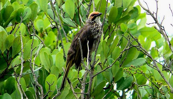 Diagnostic markings :- 29 cm. You cannot find this bird. Instead the bird would announce its whereabouts. Meaning, if the bird is in the vicinity you would be notified by its call. Just a couple of weeks ago that what I thought. I heard its call but as usual this bird like the Hill Mynas remained high in the canopy level. Could not be spotted until it left its perched and flew to the canopy of a lower tree. [1] crown & cheek - Golden-yellowish very prominent [2] nape, mantle, scapulars and the breast with fine and short white steaks. Throat is white and not puffed but the thick black submoustachial ordering the throat is obvious Distribution :- This bird is native to Peninsula Malaysia, used to have them in Southern Thailand as well. Not maybe not! This is a very much sort after bird by the breeders. it's presence easily told by its loud and distinctive calls. Habitats and preferences :- A lowland bird that prefers forest edge with human presence. Among which are plantations, public parks and along major country roads. Mangrove forest is also one of its preference. Somehow all these spots have one property in common - water source. Usually a stream or river, even a fair size pond will do. A common bird in FRIM, Kepong and also in Bagan Sungei Buloh by the sea side. This is the largest Bulbul and a very well sort after as a caged bird. So it is a poachers' favorite. The Striped-throated Bulbul has some resemblances with this bird but easily told apart. The Straw-headed is obviously a large bird when compared to an average Bulbul, the golden marking are more widespread and more distinctive. No way to get confused in the ID for the both. It is not a common bird to encounter, but the pair in FRIM had remained there for years until the last couple of years. There was another family in Kemensah, staying among the house overlooking the fish pond. Funny, these two that I mentioned plus a couple more were all seen near settlements though out in the rural areas. Even the bird in the series of pictures below were at the edge of a Mangrove forest beside the kampong in Bagan Sungei Buloh.