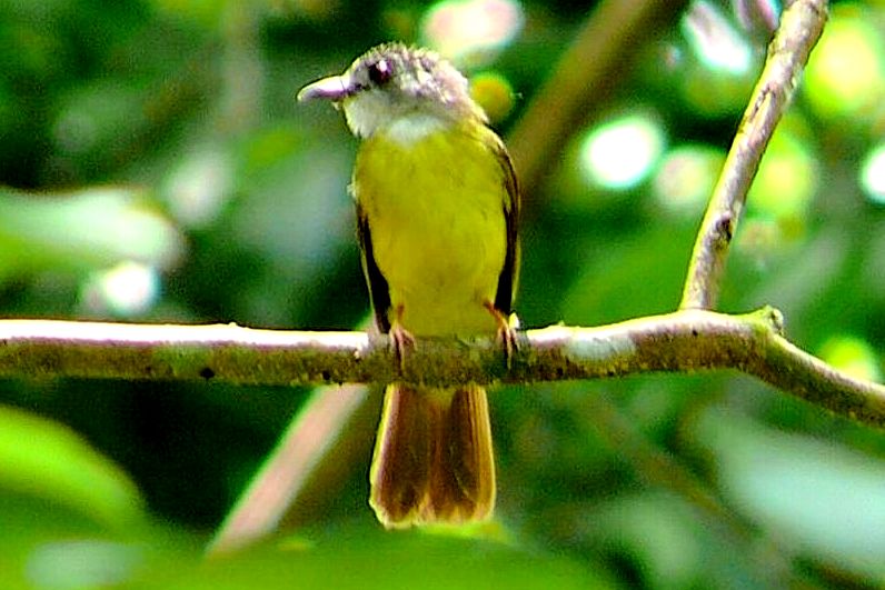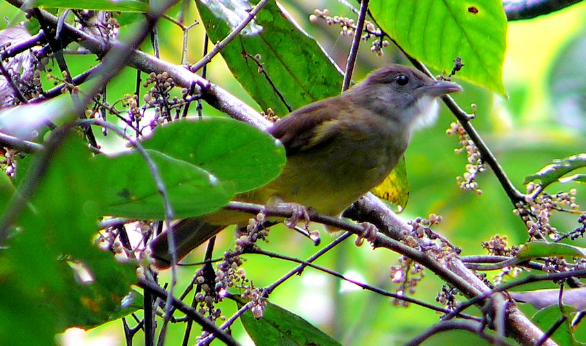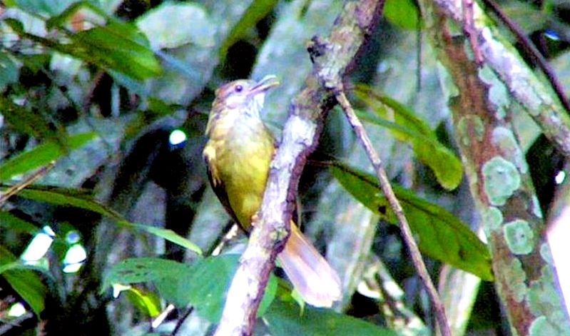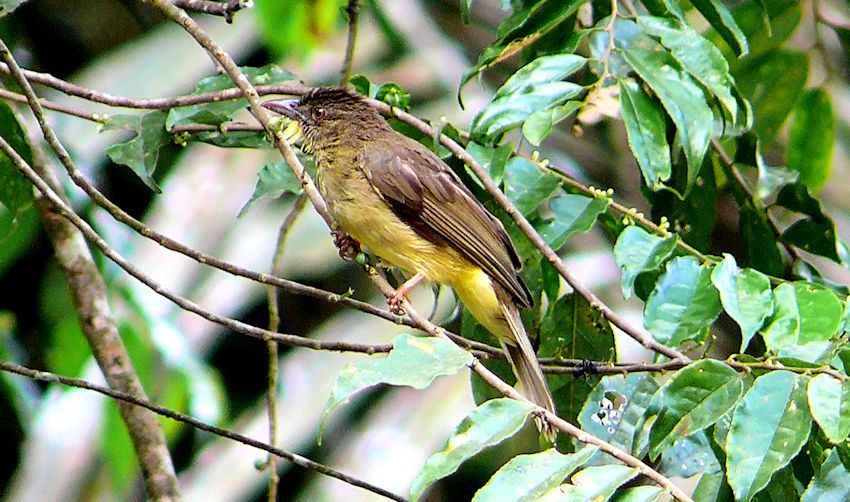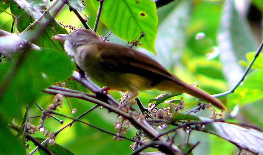 Diagnostic markings :- 20cm. I suppose it is that longer tail the species has that makes it measurement longer. Otherwise this is a slim tiny bird.[1] Bright yellow under part [2] Grey head with white face below eye and white throat. Upper part typical of brown Bulbul. Distribution :- This bird is native in Sumatra and the Borneo Island. I am still looking for them. All meeting up were accidental. Habitats and preferences :- Lowland deep forest bird. It frequents the lower to middle storey. The bird hunts alone or in group. It stay in perch for some time and when calling, the white colored puff throat is prominent. Their favorite hang out are very dark places under canopy area. While it is not difficult to find them, I do not get the chance to meet them that often, except in Taman Negara. Within that forest area, on almost on all the trails, I walked I got to see them effortlessly. Need not travel that far, at certain times of the year, they are spotted in the forest of Pangsoon & Congkak as well. Meeting up with them is seasonal. If they are around, chances of seeing them is very good.