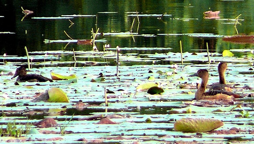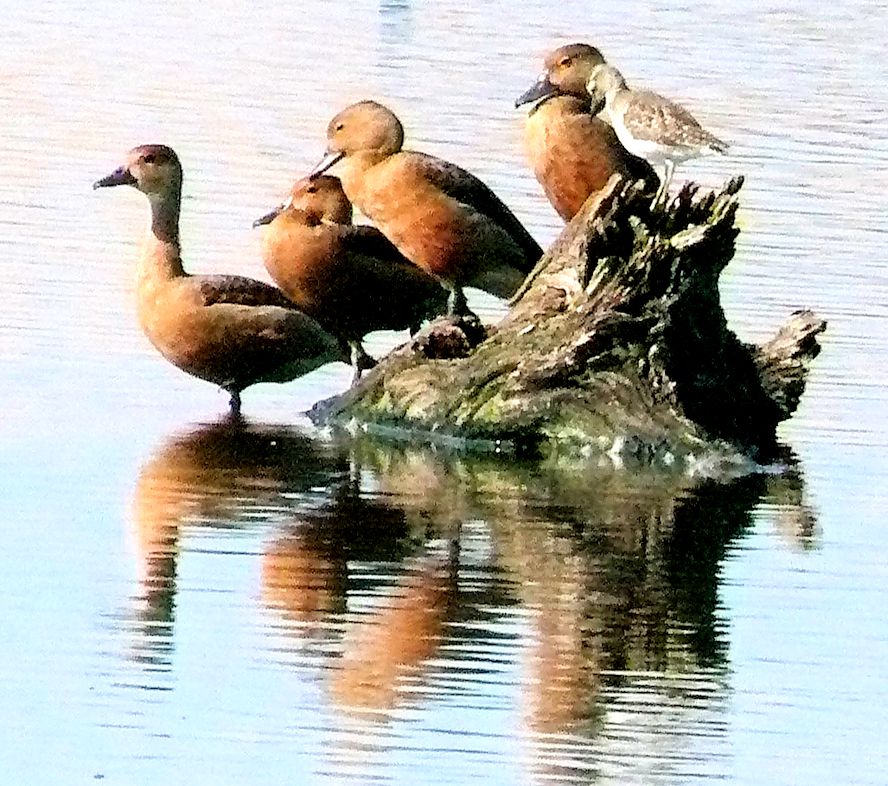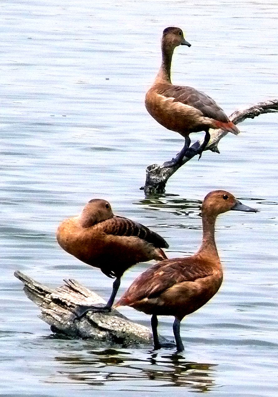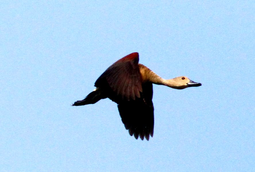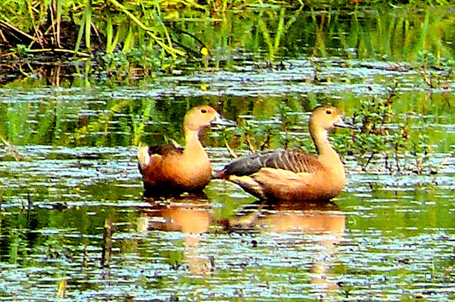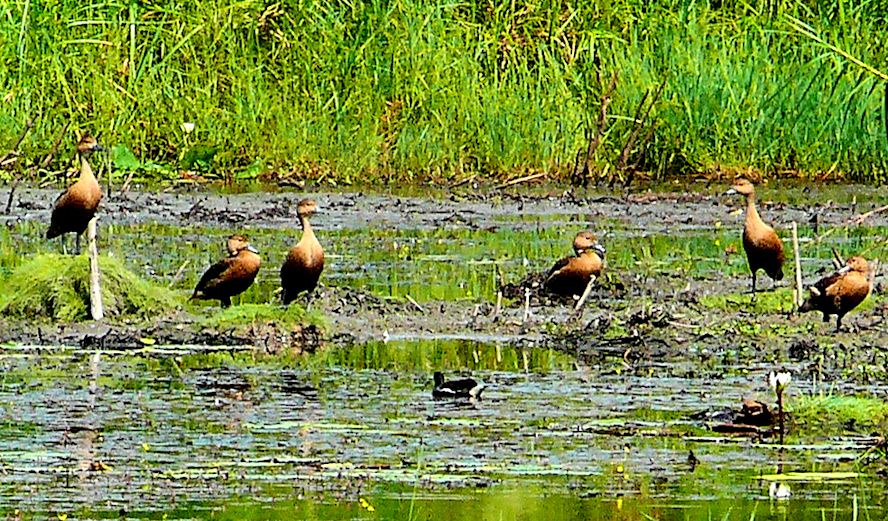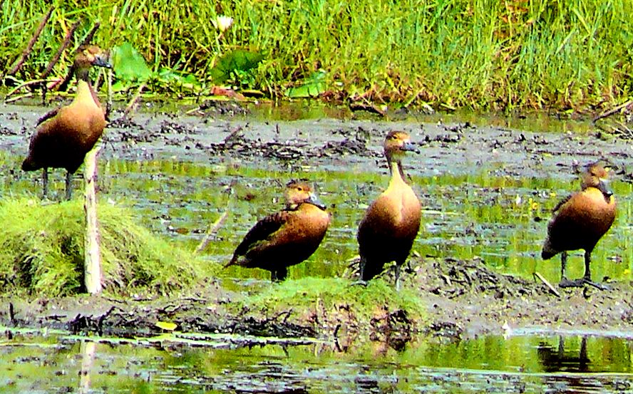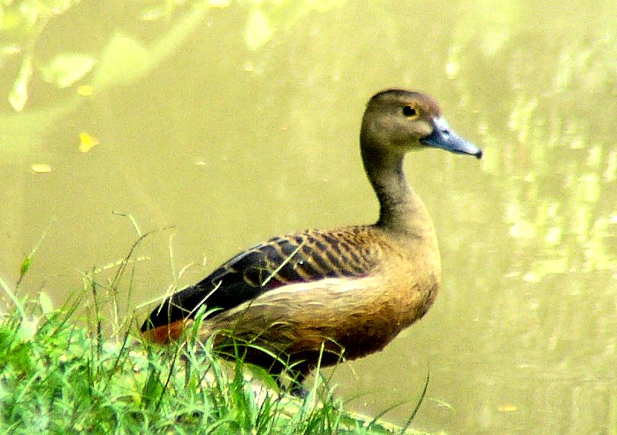 Whistling Ducks belongs to the bird's family of Dendrocygnidae - The Lesser Whistling Duck has typical duck profile with long neck and short bodies, with rounded wings. They feed on aquatic vegetations, fishes and amphibians etc. Worldwide there are 9 species of these birds and 3 of them are found in South-east Asia. We have one in Malaysia, the Lesser Whistling Duck. This Duck is normally found in India, across south-east Asia, reaching east to Japan and south to the Sundas There are 3 Ducks all together with the Lesser Whistling Duck and they look nearly identical. The Wandering Whistling duck which is marginally larger at 45cm as compared to 40 cm - told apart by the lack of golden eye-ring plus a blackish line down from the forehead down to the nape and hindneck. Then, the obviously large Fulvous Whistling Duck at 55cm. It has a patch of prominent streaks on the neck and white flank streaks as well. This Lesser Whistling Duck has other names among which Tree-Duck before its name finally settled on Whistling-Duck, so-called due to its habit of perching on tree branches. This Duck is a nocturnal feeder and in the daytime, they gather in flocks around ponds or wetlands. The duck sometimes build its eggs in the hollow of trees or on nest located at the fork of large branches. they could lay up to 17 eggs but normally the brood size is between 9-12 ducklings. Lesser Whistling Duck' 1