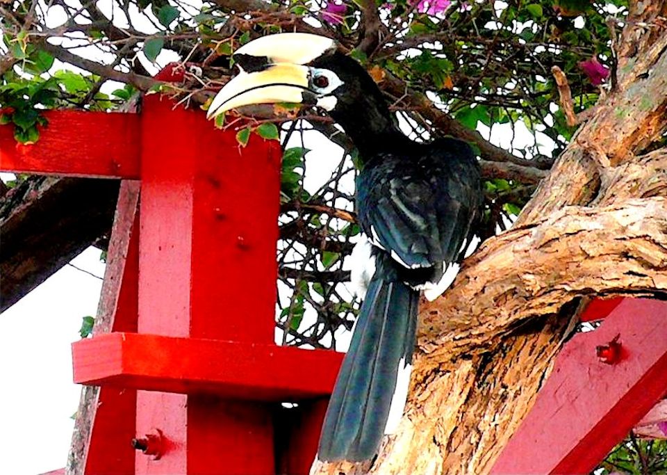 This is the most common Hornbill in Peninsula. Found in all lowland forest with water ways and along the coast, easiest and closest for me would the Raja Mud a forest in Sekinchang or the Langat Dam area in Pangsoon. For those non-birders but loves Hornbill, put up a night in hotel operated by our badminton star Tan Yee Khan on Pangkor Island itself. He feeds them each morning, not a pair but the whole flock. Along that whole stretch of coastline in Pasir Bogak, the Hornbills would be visiting hawkers stores. If you are lucky enough the Rhinoceros may be flying past as well.