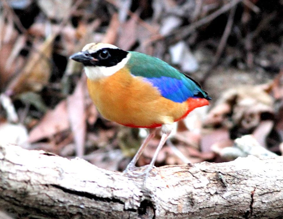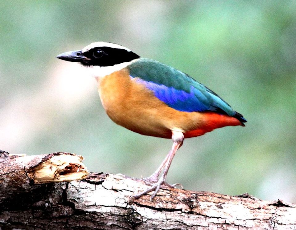 Size & diagnostic markings:- 20 Cm. The Blue-winged Pitta is larger at 20cm, less roundish body. It has a dark green upper part and a rufous under part with a patch of red starting from the center of the under side to the vent. Most prominent would be the black face buff brownish crown with a black line in the center. Then the broad bright blue stripe along the wings. Distribution :- The bird breeds in south-west China. It winters around Sumatra and Borneo. Another Pitta that is frequently seen in Malaysia now during the migratory season.Habitats & preferences:- This is a lowland bird of the forest edge and usually where there is a body of water nearby. This Pitta do not seek remote jungle but flat lands with water sources and wet patches. So far most places spotted are in parks with human The Blue-winged is about 20 cm long. The bird breeds in South-western China and winters in Sumatra, Java and Borneo. This birds choose open country, parks and secondary forest in the lowland areas. |