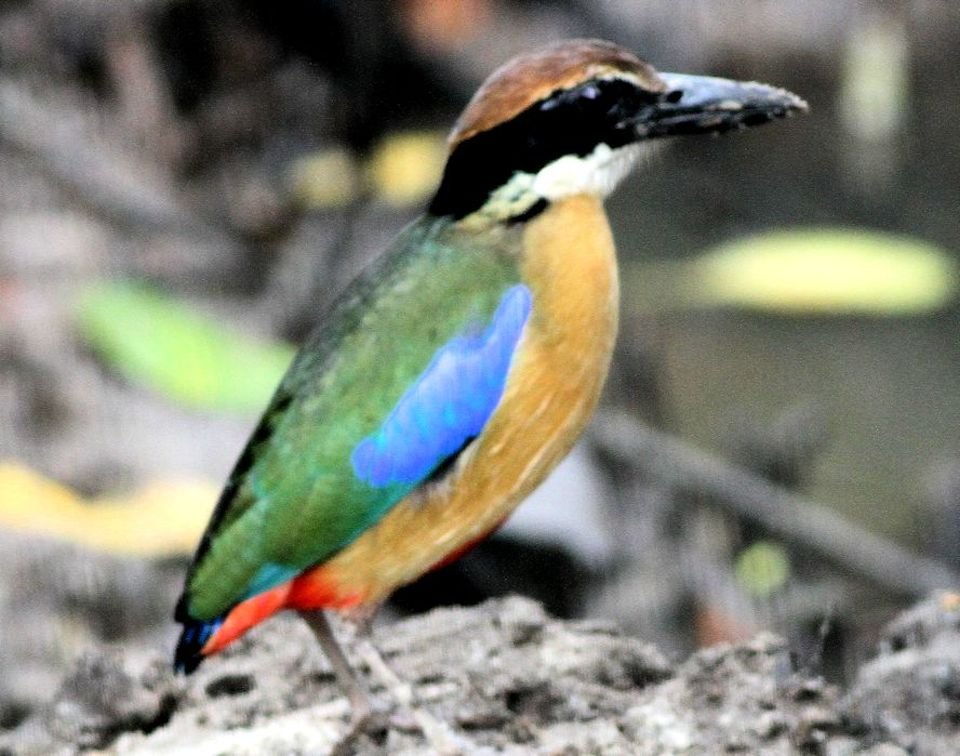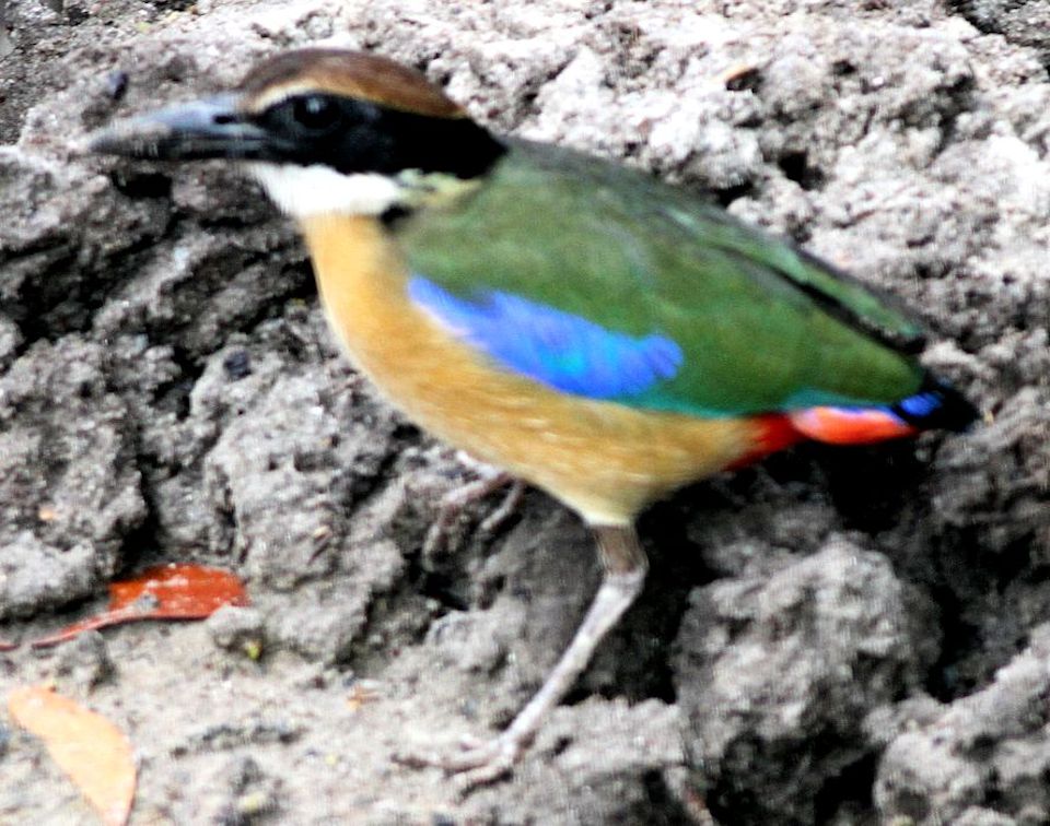 Size & diagnostic markings:- 21 Cm. The Mangrove Pitta sharing the same body shape and colorization with the Blue-winged Pitta is slightly larger at 21 cm. The features are almost identical with the differences listed out on the table above. Instead giving a brief run through, I have expanded the page and listing out the comparative differences between the 2 birds. Distribution :- This is a bird from the Southern Bangladesh and Sumatra. To me those Mangrove Pittas I encountered in Pulau Indah seem migratory. getting to hear them calling during the winter months. But then again, only with the experiences of one or 2 season, their stay here is rather long tooHabitats & preferences:- As the name implies, this is a bird of the Mangrove forest. The catch is that the bird forages over a large area. Most times so far away that though in the same area, their presence is not detected as the calls are lost. The Mangrove Pitta like most Pitta calls regularly and it is these calls that confirms its presence in the area. In Air Itam Dalam in Penang, I had met up with the birds a couple of times without hearing its calls. These encounters were very brief as the bird is a shy bird eagerly wanting to stay out of sight. But with the bird in Pulau Indah, these Pittas were almost domesticated displaying quite a different behavior. There was also other Mangrove Pitta in another part of Pulau Indah showing the conventional Pitta behaviors of shying away from humans. |